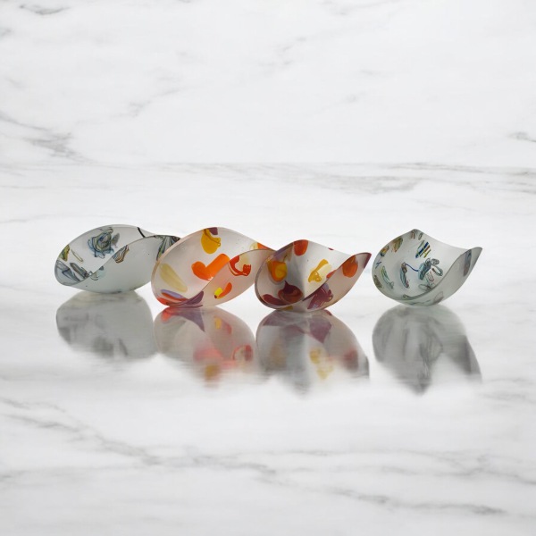 Verfolia: a poetic work inspired by the vulnerability of living things, specifically the cradle of birds. Composed of approximately one hundred opaque glass leaves, molded from real willow leaves, sanded, sandblasted, and then annealed, the installation evokes a delicate nest, suspended between the natural and the artificial. The light filtering between the leaves creates a soft and shifting atmosphere, where each reflection becomes a trace of a cycle of transformation. Here, glass becomes a memory of nature, transposed into a contemporary language. This fusion of artisanal precision and the randomness of life fully responds to the theme of Singular Nature.