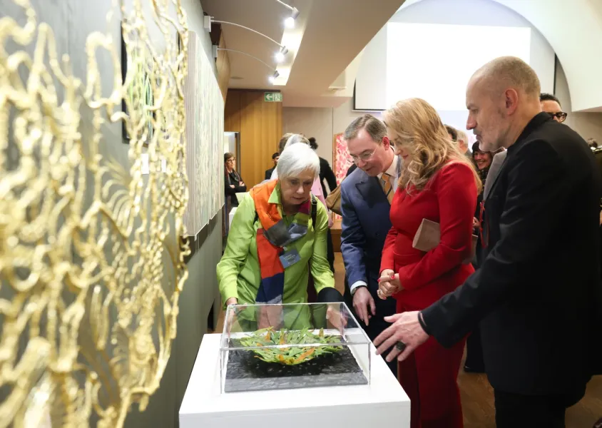 Exhibition Opening, showing my art piece to YRH Grand-Duc and Grand-Duchesse of Luxembourg